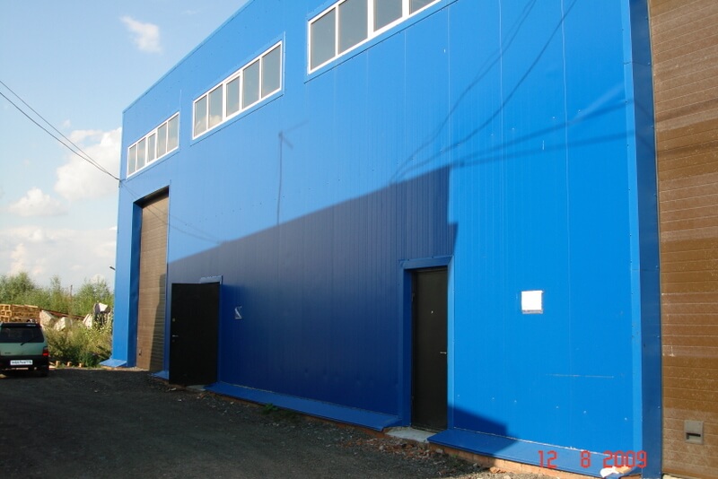 Стандартно – фундамент, каркас из металлоконструкций, ограждающие из сэндвич-панелей и покрытие с мембранной кровлей. Все эти работы были выполнены в кратчайшие сроки.